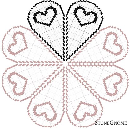 This filet pattern can be used in different ways. If you make two pieces and join them, you have a big heart with two hearts inside. If you make 8 pieces and join them, you get a round table topper.