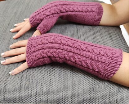 These fine cable mitts (fingerless gloves) have ribbed edges and three fine cables which run the length of the back of the arm and palm, with a stockinette inner side and thumb. A pair of mitts can be knitted with only one 50g ball of 4-ply yarn, so they are very affordable to make and make perfect gifts for Christmas.