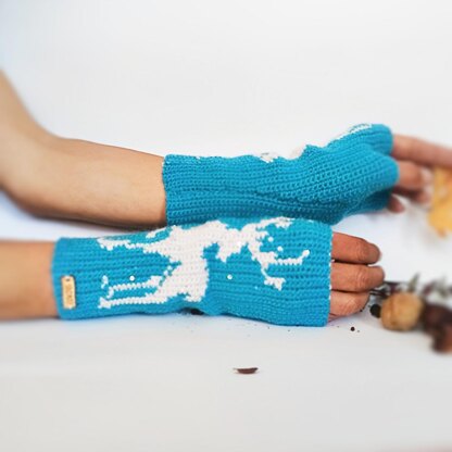 Fingerless Gloves - Tapestry Crochet - Christmas deer.