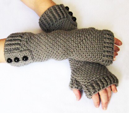 These Fingerless Gloves are so fun to make and even more enjoyable to wear! They are one of the best cold weather accessories to have because of there versatility! Plus, they keep your hands and arms so cozy and warm. You will love the decorative detail of the faux button flap as well as the texture created with the different stitches.