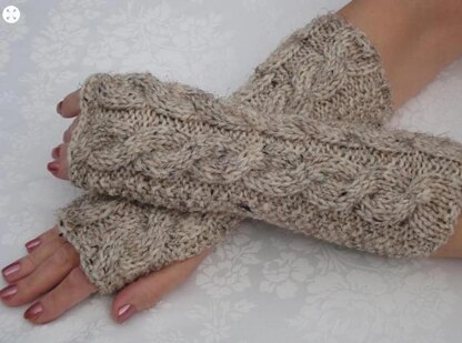 Fingerless Gloves.Mitts.Wool Cable Wristers.