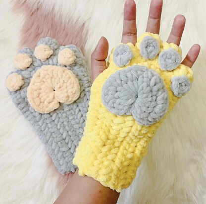 Crochet Fingerless Paw Gloves using a Velvet Yarn. Materials used is Himalaya Dolphin Baby and 5mm hook (H). Pattern size fits Small to Large hand.