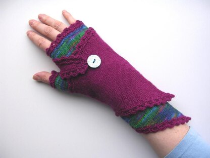 These fingerless mittens will keep you double warm because of the extra layer! On milder days you can wear the mitts without the wraps. And there are some more options for variations: You could use 2 solid colour yarns, if you prefer. Or use the variegated for the wraps, and the solid for the mittens. And if you enjoyed the knit: knit lots more wraps and mittens, and combine them differently each day!
