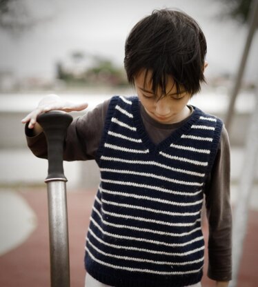 Fiocco Vest is a year-round layering garment for babies and kids. It features a V-neck in the front and shaped neckline at the back. The pattern includes instructions both with and without short rows.