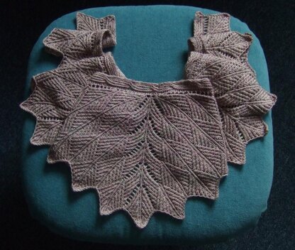 Inspired by Zoë Warren, First Officer of the 'Serenity' in Joss Whedon's cult space-western 'Firefly'. On the lawless and near barren frontier planets that this renegade crew frequent, I envisage Zoë favouring practical clothing in earthy, camouflage tones,. I therefore immediately thought of a kerchief/ scarf, which could simultaneously be used for warmth, disguise and as protection in the dusty 'Wild West'. Texture and geometric shaping, evocative of Central American folk art has been used in deference to Zoë's rustic sensibilities, giving both decoration and knitting interest.