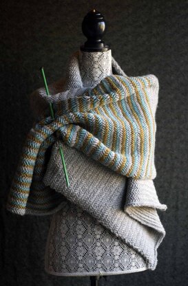 The gorgeous colors of Cascade Eco + in this wrap remind me of sunshine, blue sky, and those silver grey clouds that sometimes bring snow. The eye-catching herringbone striping is continued for only a third of the way through as a way of bringing color into the piece, but not overwhelming the senses. Despite the size of the piece and it being worked in a herringbone stitch, this oversized scarf works up pretty quickly.