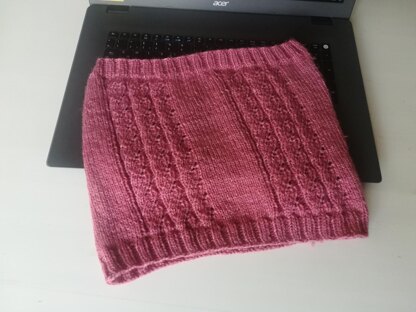 You will need only one skein (240 mts) of Aran yarn to knit it and it will keep you warm and in style.