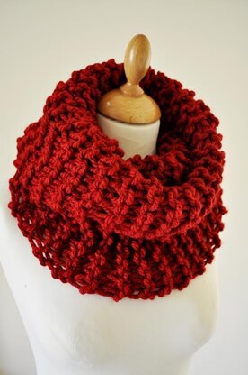 Sport this red chunky knit cowl on Valentine's Day and feel proud of it because you created it. It is the perfect pattern for the busy woman who has little time on her hands to create, though she loves it. It can be knit in one hour or two.