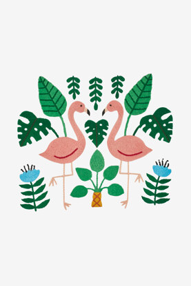 This free pattern brings colour, pattern and symmetry to your next embroidery project. With different shades of green and a bold pink for the flamingos, you’ll grab the attention of anyone nearby. Holly Maguire is a London based designer who features lots of colours and playful imagery in her work. She draws inspiration from vintage advertising, Japanese illustration, botanical gardens, watching people (and dogs), and visiting museums. Coming from a creative family, Holly has always seen drawing as a form of expression and a great way of escaping to another world.