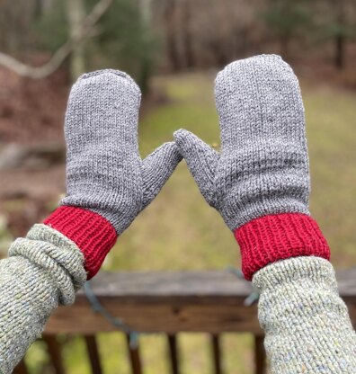 These cozy, warm mittens are fast and easy to knit. They are a great way to turn your yarn stash into gifts for loved ones. The color possibilities are endless! Don’t feel that you have to stick with my suggestions, they’d look great with color blocks, stripes or as solids. Have fun! The blue mittens in the pics were created by test knitter bethjhoran and she added her own cable.