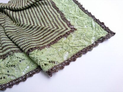 This inspired me to design this triangular shawl. The body of the shawl is knitted in stockinette, surrounded by a lace border with butterflies. The lace is knitted on both sides. Therefore it‘s recommended for intermediate knitters.