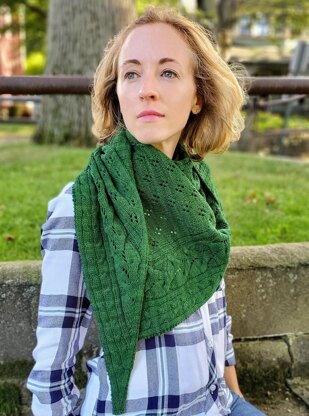 The Flint Hill shawl combines lace, cables, and ribbing into one classic wrap for all seasons. Because of this variety of textures, this pattern works best with a smoothly spun fingering-weight yarn in either a solid- or mostly-solid colorway. The triangular shawl is worked flat from one corner upwards in one piece. Each section of the shawl is written out and charted.