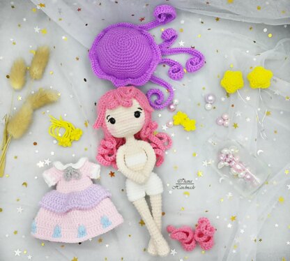 Suggested Materials & Tools: Soft stuffing cotton Aislon Reg doll yarn 40g 100% acrylic or other brand yarns (suggest paintbox simple DK, yarn and colors-must have, Alpaca yarn ) Clover Amour Crochet hook 2.0 mm ( 2/0 ) Craft wire/ aluminum flexible wire (thickness approx 1 mm type) Embroidery thread Button x2 (9 mm) safety eyes 7mm/8mm per pair Hook and eye (hook x2 0.8mm size) Finished size about 20 cm/ 8" inch (including hat and shoe size).However, the doll size it’s depends on the yarn and hook size to use.