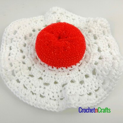 This scrubbie dishcloth is attached to a store-bought scrubbie to give you both worlds of washing dishes in one cloth. On the one side you'll have a super tough scrubber for the toughest messes, while on the other side a soft cotton to keep your dishes safe while cleaning.