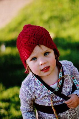 Flora is a vintage inspired bonnet, designed to capture the classic bonnet hat shape but with a modern lace motif. This adorable hat makes the perfect baby shower present as well as a quirky hat for the adult woman who is looking for something a bit different. The pattern is sized from baby all the way up to adult just in case Moms and Daughters want to wear matching hats! The bonnet is knit flat, starting from the front and and then joined in the round to shape the back. Stitches are picked up along the bottom of the hat and ribbon is woven around the bottom to tie it up. Directions for the lace pattern are provided in both written and chart form.