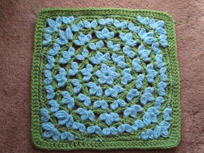 Easy double crochet clusters form a lush and unique square. Straightforward repetitive stitching. Lacy look but dense and sturdy block. Mix up your colors for a different look.