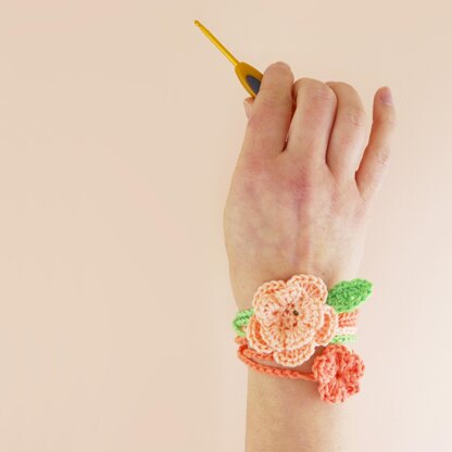 Bring colour and flowers with you everywhere with this very quick and simple project - three separate wraps layer up together to create a sweet floral wrist accessory, perfect for summer parties and festivals (or for kids to dress up with).