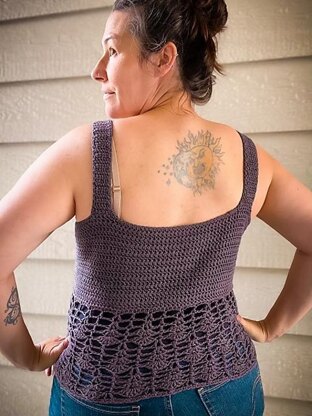 CONSTRUCTION: Worked from the top down and mostly in the round. The overall length of the bust section and body is completely customizable to you.