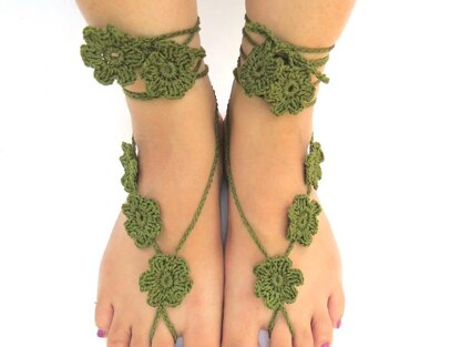 PDF pattern for crochet barefoot sandals beach wedding slippers nude sandals yoga sandals. Very easy to follow pattern with 32 pictures. There is one 13 page PDF with pictures for ease of understanding. Great gift for her. Beautiful choice for someone special. Simple yet elegant design. The pattern uses crochet cotton thread #10 about 20 gm (for one pair), 3 mm crochet hook. You can use different colors or shaded or multicolored thread for a completely different look.