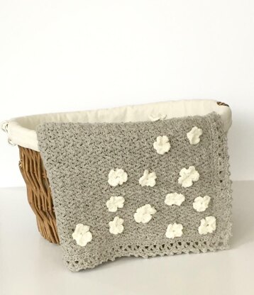Baby Blanket Crochet PATTERN for the Flower Basket Baby Blanket Design - a decorative baby blanket crocheted in a textured stitch pattern with large and small scattered flowers.
