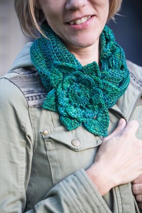 Sugar and spice and everything nice is this cute flower and bow cowl. Brighten those overcast fall and winter days with this lovely flower ‘bow’quet cowl.