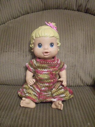 Included in the Flower Dolly Dress pattern are instructions for the dress in two sizes as well as two gauges plus 3 different skirt options.