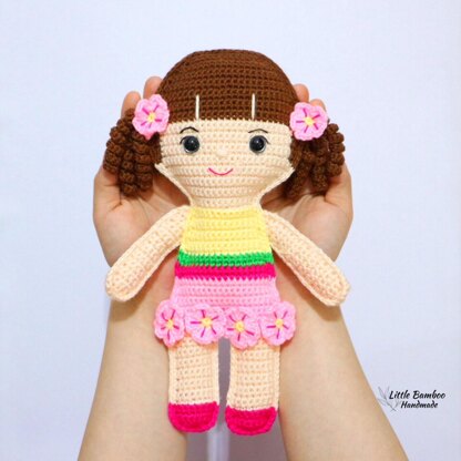 Materials: • 4 Ply Fingering Acrylic Yarn / Milk Cotton Yarn - Light peach - Light pink - Dark brown - Dark pink - Yellow - Green • 12 mm safety eyes ( 2 )