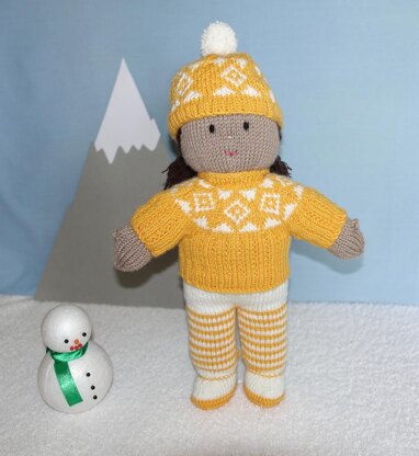 Meet Iris, Rose, Daisy and Marigold. These four little blossoms, standing at 30 cm (12 inches) tall, are knitted in one piece, which means little hands can’t pull off any arms or legs. They have a full wardrobe, including shoes, hats and a shoulder bag, also knitted in one piece. They even have their own little friend.