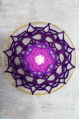 This unique Flower Mandala wall hanging is made easily and quickly with 5 worsted weighted yarn colors.