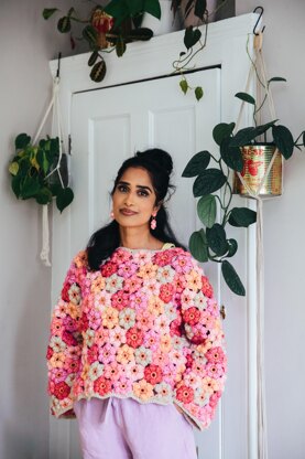 Note: for a longer jumper add a further row of flowers to the bottom of jumper