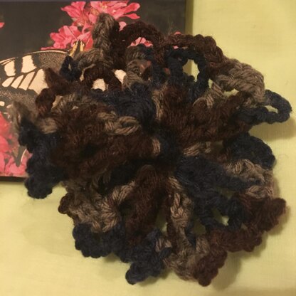 Simple openwork scrunchie in rich and sumptuous Aran yarn.