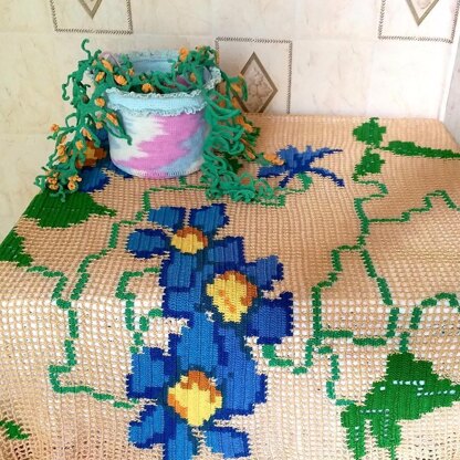 The tablecloth is crocheted in fillet style using cotton threads, hook 1.00 mm (crochet hook USA-12,GB-6.5), yarn-Red Heart Pearl Cotton made in India. Tablecloth size: length-115 cm (45.3 in); width-75 cm ( 29.5 in). When crocheting a tablecloth, you need to change the colors of the threads according to the pattern. You can also crochet this tablecloth without changing colors, in one color. This pattern consists of 18 pages in PDF format and you can download it after payment. This wonderful tablecloth will decorate your table and will be a pleasant surprise for your guests!