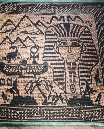 Thanks for your interest in my Flowing Egypt blanket! it was inspired by the love of everything Egyptian! This is an overlay mosaic crochet pattern with full written instructions. If you require the charts please contact me via email as I couldn't upload them separately.