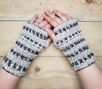 Made in luxurious Bernat Velvet, these gloves are ultra soft and warm, yet breathable. They are simple to make, and the colorwork is optional.