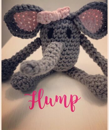 Meet Flump! She is a Cute, baby elephant with pink hair bow, finished she measure 3inches tall and sits independently.