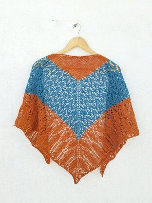 Chal triangular con espina central en dos colores y calados en dos terceras partes.