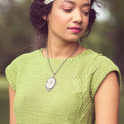 Finished Size 34 (36, 40, 44, 48, 52)" bust circumference. Top shown measures 36"; modeled with 4" of positive ease.