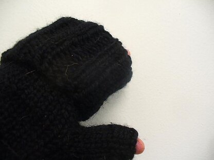 fold them over to work with your fingers. unfold to keep those fingers a bit warmer. so these are actually somewhere between fingerless mitts and gloves. Ha!