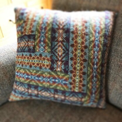 The beautiful FOLK FAIRISLE CUSHION was a very popular project at the first FAIRISLE IN THE LAKES workshop holiday in November and December 2018 and then at two day workshops in 2019. It then became a very popular kit. It uses 12 colours of BRITISH BREEDS, which are listed below and is worked in a stepped repeat pattern. Section one is worked, casting off stitches at the start of a new fairisle stripe. Section two is worked the same way but is joined to section one during the knitting.