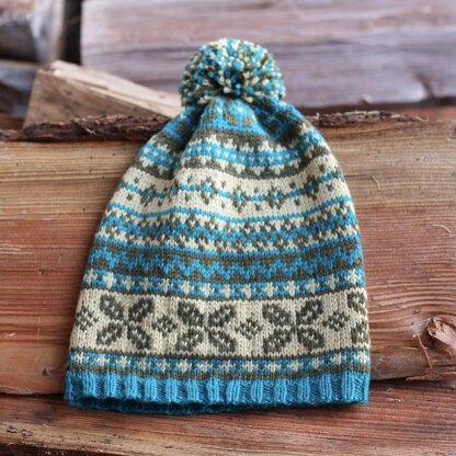 Choose 3 of your favourite colours with highly contrasting values to blend in this folkloric and floral stranded toque.