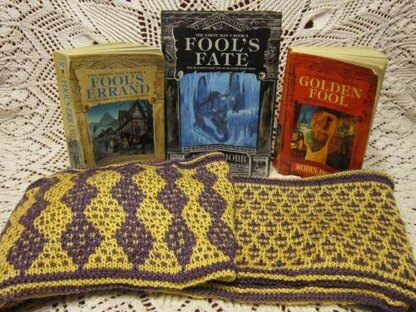 In Robin Hobb’s 16-book series-within-a-series, the Fool remains a central character throughout, though he goes by several guises depending on what the situation needs him to be. At first, he is simply The Fool, wearing his Fool’s motley to entertain King Shrewd and his guests. Later, he becomes Lord Golden, a wealthy, immaculately dressed nobleman of the court. This reversible cowl gives you the opportunity to wear the Fool’s motley for a bit of fun or Lord Golden’s brocade for a more elegant look.