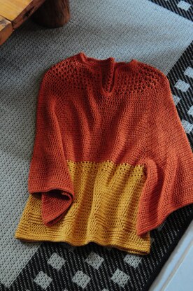 Top-down crochet with raglan-style sleeves. Design inspired by the landscapes of autumnal forests. With a loose fit and wide sleeves, a little bit of texture and a lot of comfort and freedom.