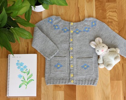 The Forget-me-not cardigan is a gorgeous top-down piece worked with beautiful, delicate flowers around the yoke. It is a fun and simple pattern to work with lots of easy to learn techniques for those wanting to practice new skills whilst still being interesting for more advanced knitters. The pockets with their cute motif designs are great for little ones to keep their hands warm.