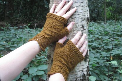 Fossilised ferns mitts are fun to make and fun to wear, and perfect for those autumn (or spring) days when there's a little nip in the air. The pattern is sized to fit a woman's medium hand. Unstretched, the mitts measure 6.5" around the palm, just above the thumb, to fit a hand approximately 7 to 8 inches around.