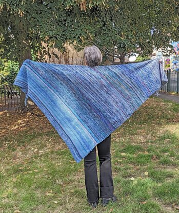 This shawl was inspired by paint being mixed on an artist’s palette. Every time the colours meet new nuances appear.