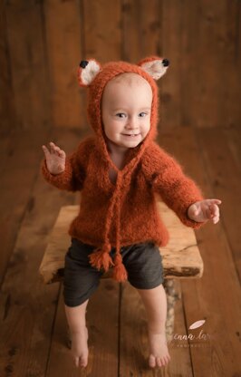 This cute little fox hoodie is incredibly soft. Each part of the hoodie is knitted flat and sewn together. It is made to fit size 12-18 month. For this pattern, you'll need Blue Sky Fibers Brushed Suri yarn. You’ll need 300 yards of orange, 20 yards of white, and 3 yards of black. You'll also need US Size 10 (6mm) knitting needles and an optional Size D (3.25mm) crochet hook (optional).