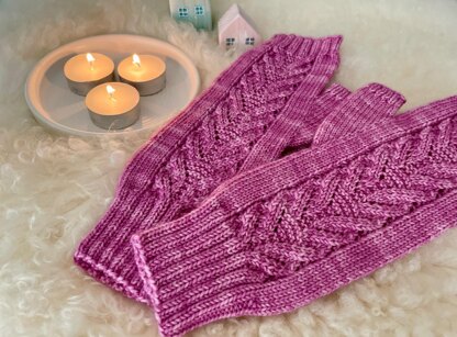 A foxglove inspired lace panel adorns the mitts, perfect for winter gifts that have a hint of those long summer days.