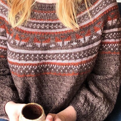 NOTE: This design is meant to be worn with 8-12” positive ease, to choose the size for the intended fit, pick your size based on the finished measurements. Yarn MC= Madeline Tosh Vintage Worsted weight yarn, approximately Shown in Pecan Hull 880 ( 960, 1030, 1100) (1220, 1280, 1320) 5 (5, 6, 6) (7, 7, 7) skeins CC 1= Madeline Tosh Vintage Worsted weight yarn, approximately Shown in Saffron. 110 (120, 130, 150) (170, 185, 195) yards, < 1 skein all sizes. CC 2= Malabrigo Worsted weight yarn, Shown in Sandbanks. 120 (140, 155, 170) (185, 200, 220) yards, < 1 skein all sizes except 3XL.