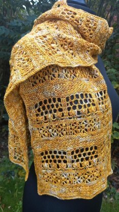 Buzzing with Texture and Detail, the Fractured Bee Line Scarf is a Journey in Every Stitch. Designed for experienced crocheters, this Scarf explores rich textures through an intricate mix of front and back loop stitches, post stitches, puff stitches, and popcorns. Delicately placed beads form the shimmering “heads” of abstract bee motifs, adding subtle sparkle and dimension. Worked in fingering weight yarn with just two skeins, this pattern offers a meditative yet engaging project for those who love detailed work and bold visual payoff.