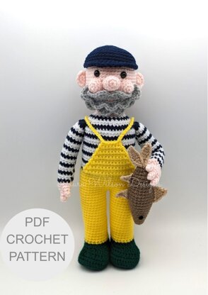 You will need the following materials: ● DK yarn - I used Hayfield bonus DK in Peaches, White, Navy, Light grey mix, Bright lemon, Bottle green, Walnut, Pecan and a small amount of black for the fish eyes ● 3mm crochet hook ● 8mm black safety eyes ● Stuffing ● Yarn needle ● Stitch marker ● Pins to help with sewing ● Scissors ● 2mm aluminium armature wire for the arms- you could use pipe cleaners instead but you will need to wind them around each other to make it strong enough ● Pliers with wire cutters